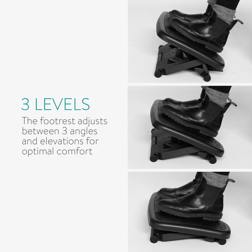 Suport picioare reglabil Navaris, 3 trepte, platforma 46x34.5 cm, inclinare 0-25 grade, negru, plastic