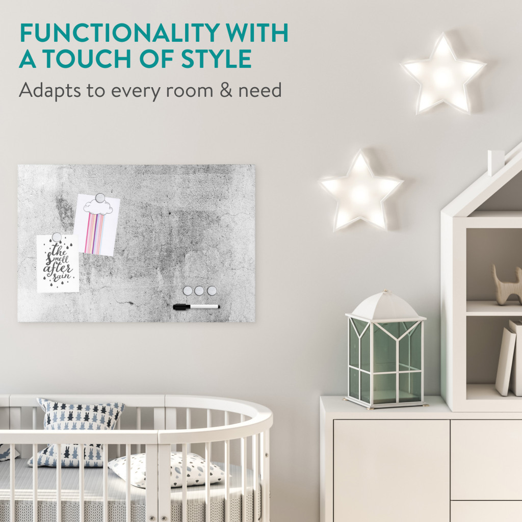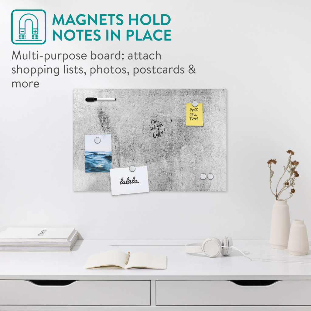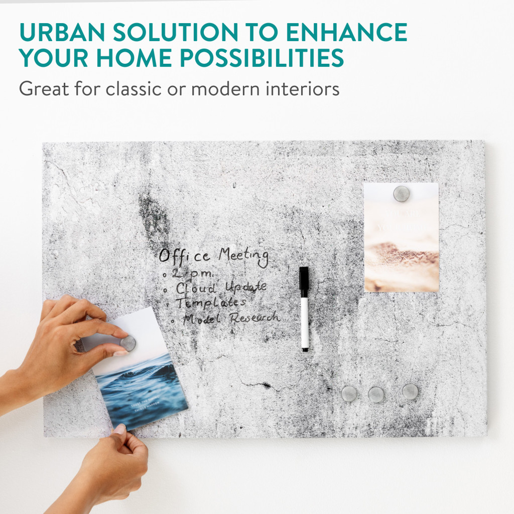 Tabla magnetica Navaris, 60x40 cm, design beton, marker si 5 magneti, multicolor, MDF