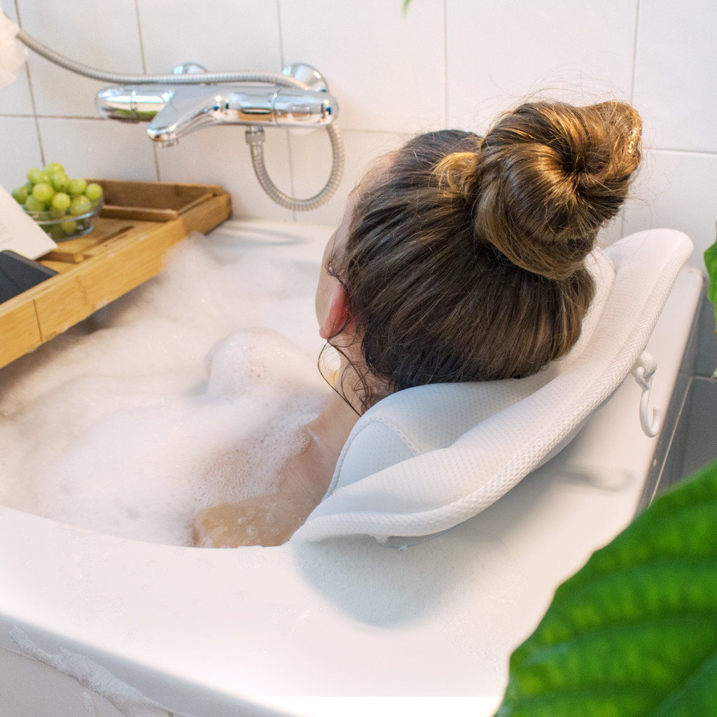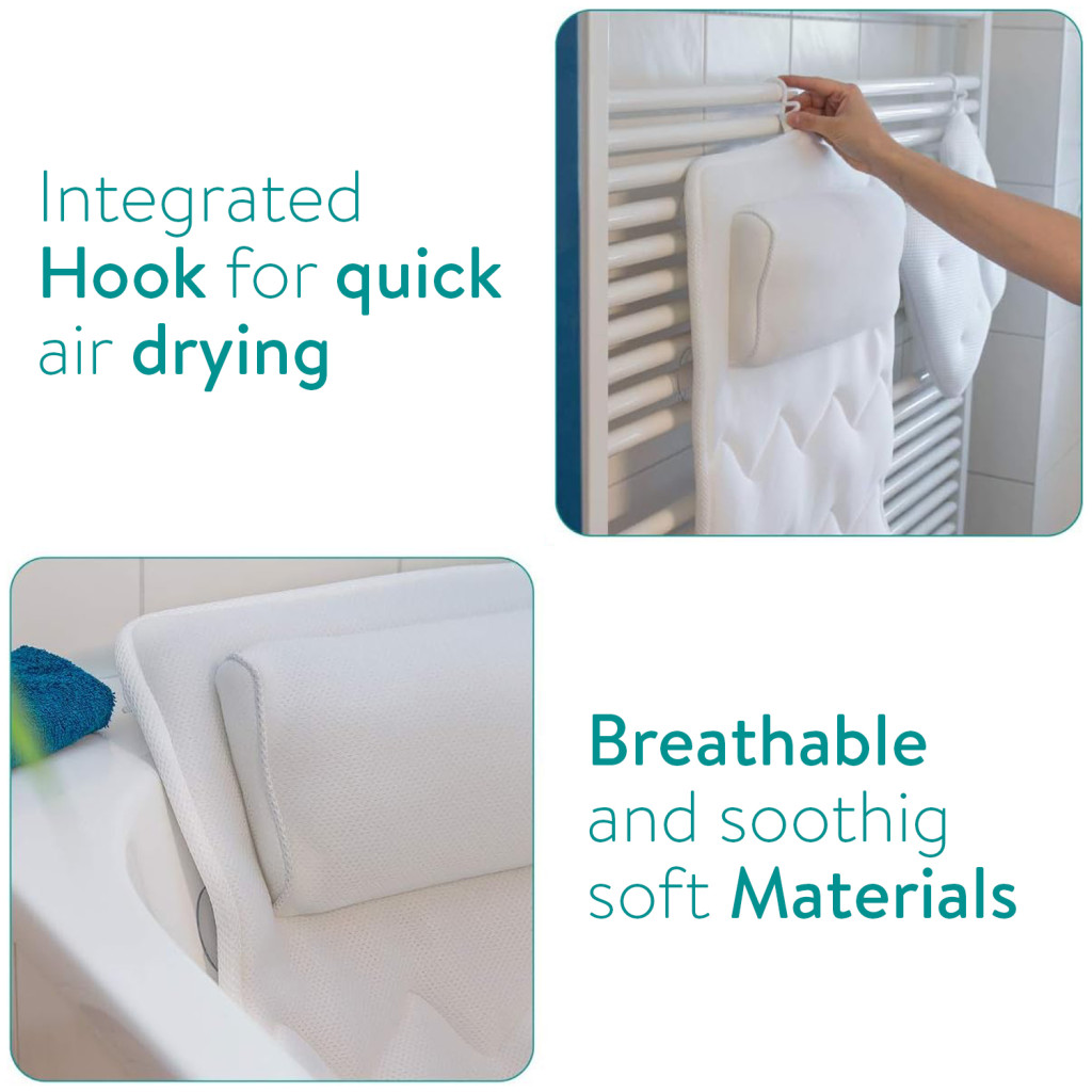 Saltea baie Navaris, 125x42 cm, perna pentru cada cu 13 ventuze antiderapante, alb, poliester