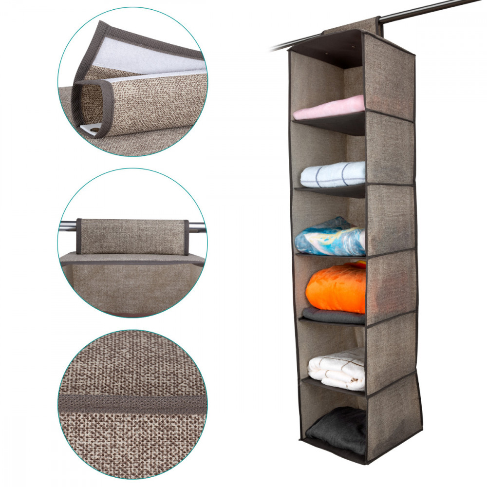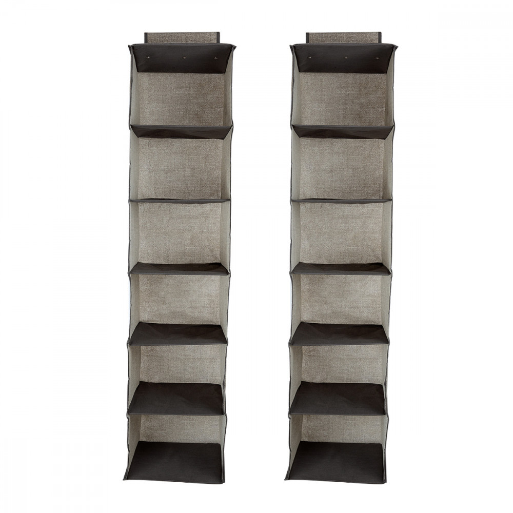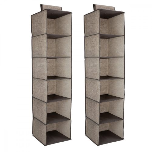 A 2 db függő ruharendezőből álló készlet, mindegyik 6 polccal, ideális a szekrények helyének maximalizálásához. Egyenként 30 x 30 x 126 cm méretűek, ezek a rendezők tökéletesek a ruhák rendben tartásához és hozzáférhetőségéhez. Mindegyik polc elegendő helyet biztosít a ruhák, kabátok, cipők vagy egyéb kiegészítők tárolására, így sok szabad helyet takaríthat meg.