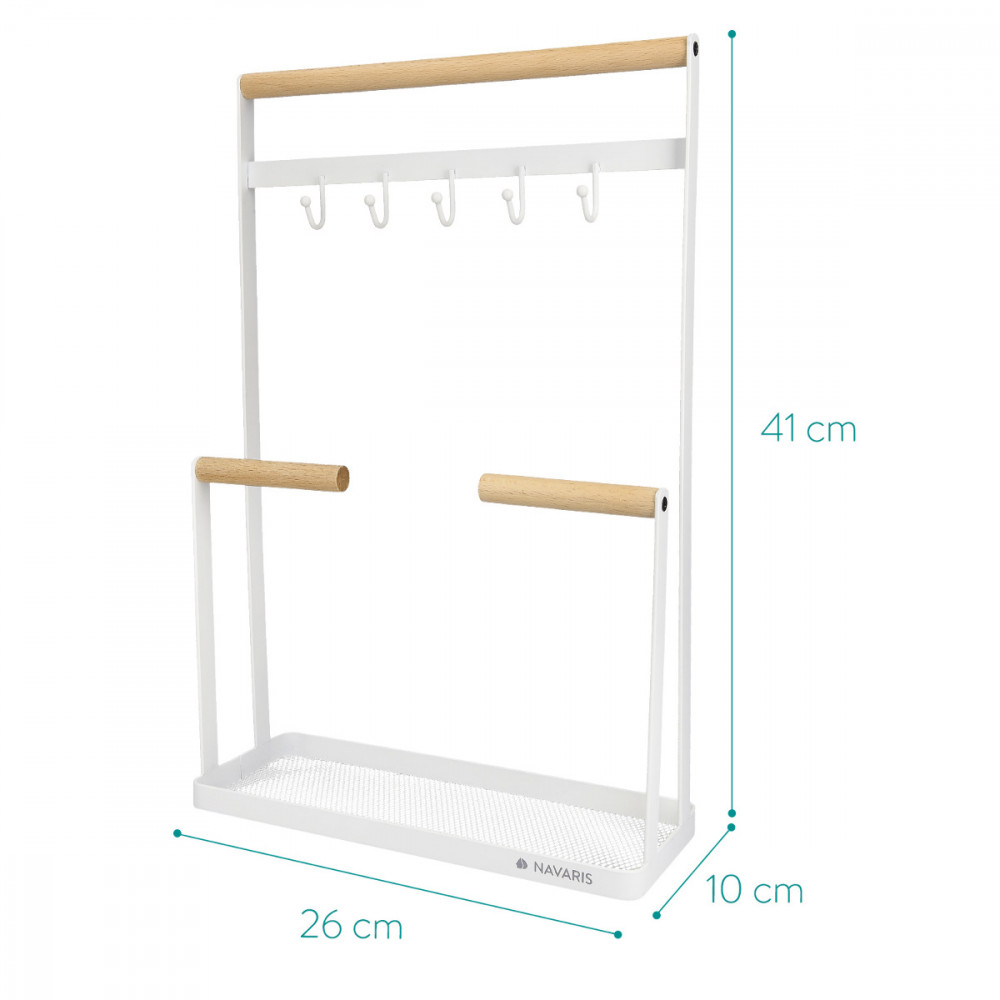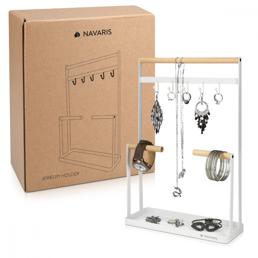 Rendszerezze nyakláncok, karkötők és egyéb kiegészítők kollekcióját a Navaris ékszerállvánnyal. Nagyon magas kialakítása különösen tökéletes ahhoz, hogy a hosszú nyakláncok szépen lógjanak a kiállításon.