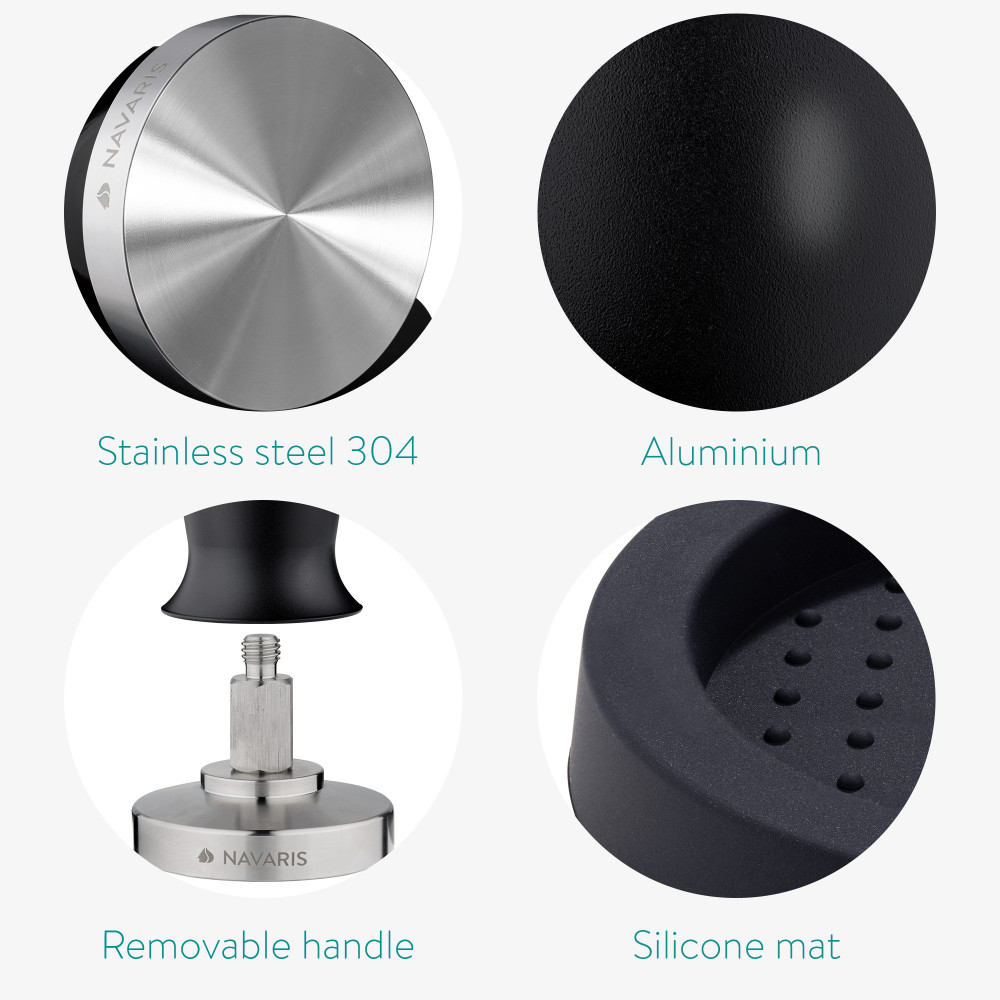 Alumínium fogantyú egy csipetnyi elegancia ehhez a Navaris kávés tamperhez. Ez egy nagyszerű kiegészítő, amellyel kortárs eleganciát ad otthoni felszereléséhez.