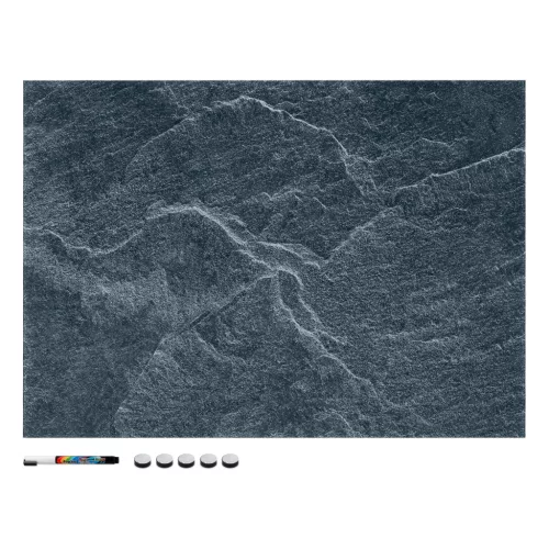 Tabla magnetica Navaris, design piatra neagra, 70x50 cm, planificare si notite, negru, MDF/otel