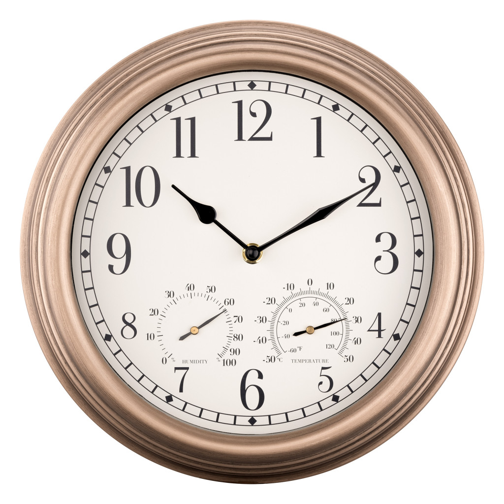 Ceas exterior gradina Navaris, termometru si higrometru, diametru 30.5 cm, rezistent, negru, plastic
