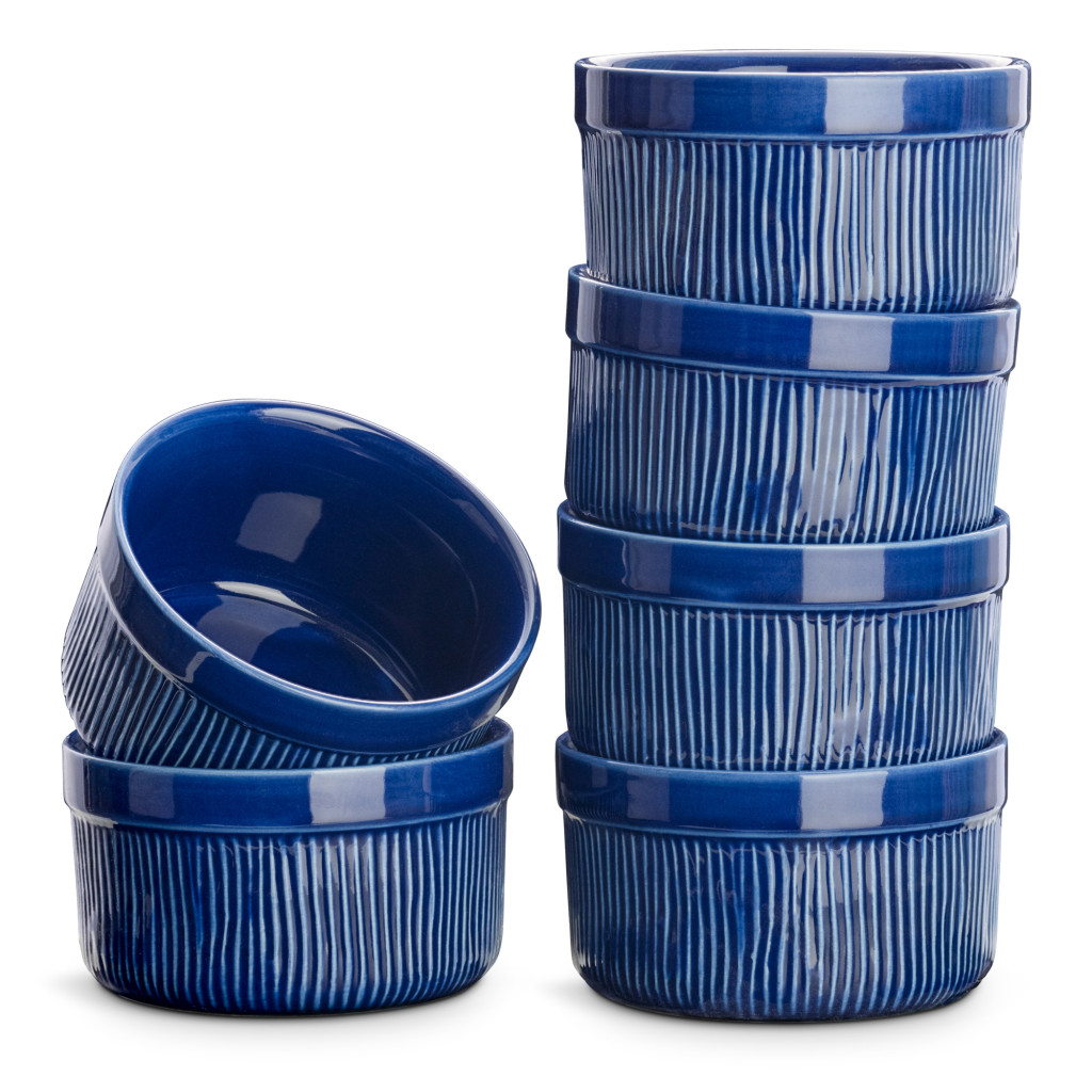 Set 6 ramekin ceramice Navaris, 9 cm, pentru cuptor 220C, deserturi/tapas, albastru, Ceramica