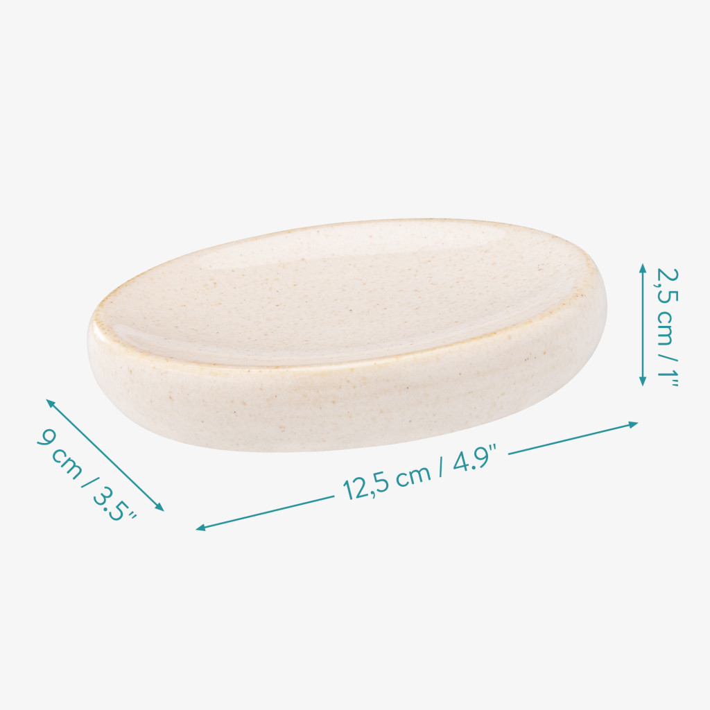 Set 3 accesorii baie Navaris, dispenser + suport periute + savoniera, bej, ceramica/metal