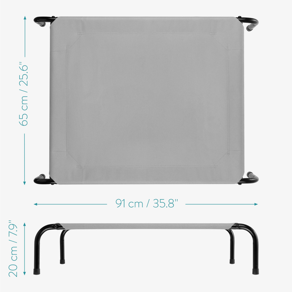Nagy teherbírással 25 kg-ig ez az emelt kisállatágy közepes és nagytestű kutyák számára alkalmas. A vaskeret és a poliészter szövetszerkezet könnyen összeszerelhető, hogy hűvös és kényelmes pihenőhelyet biztosítson kedvence számára.