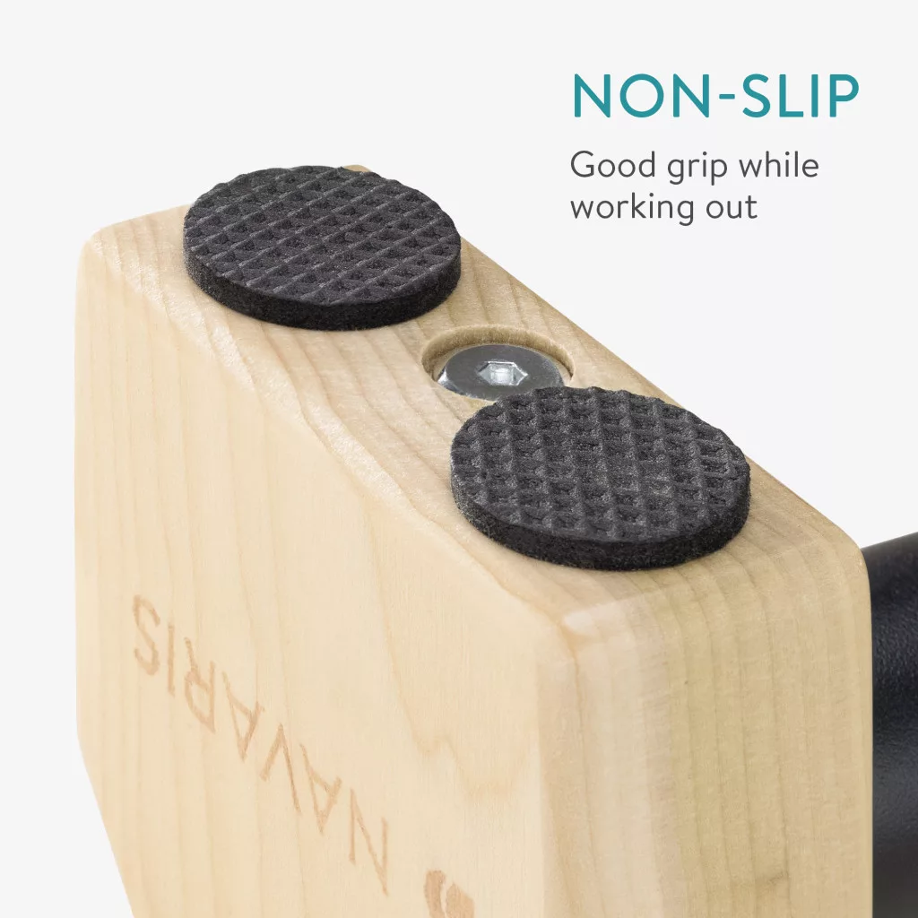 A Navaris fa párhuzamos rúd ideális CrossFit edzésekhez és gyakorlatokhoz, mint a fekvőtámasz, tolódzkodás vagy húzódzkodás. Fenyőfából és kiváló minőségű csúszásmentes anyagokból készült, stabilitást és biztonságos tapadást biztosít, akár 200 kg-ig terhelhető.
