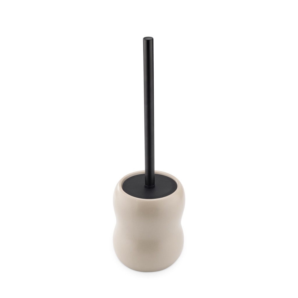 Suport perie WC ceramic Navaris, 12x40.5 cm, maner inox, bej, otel inoxidabil