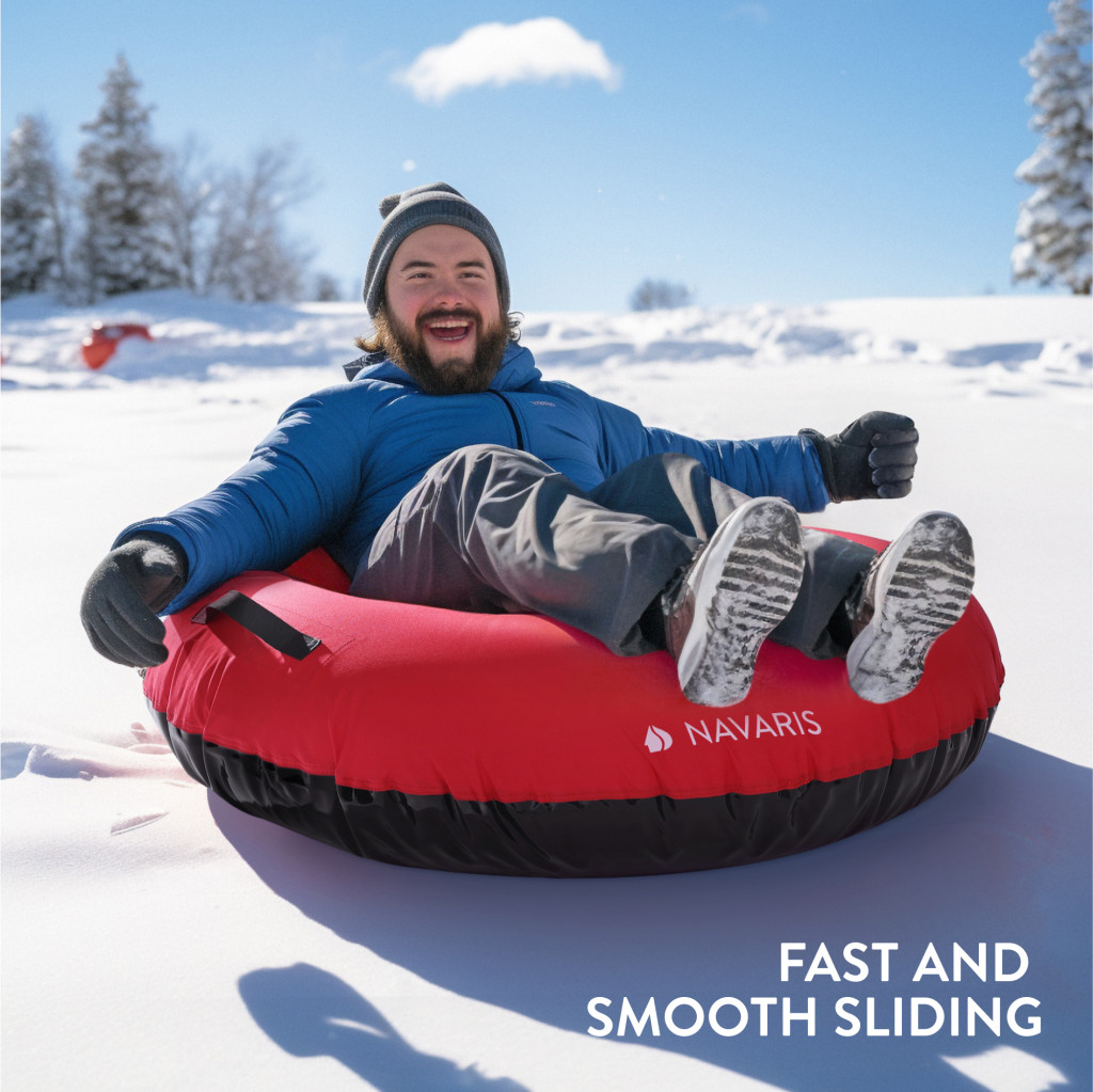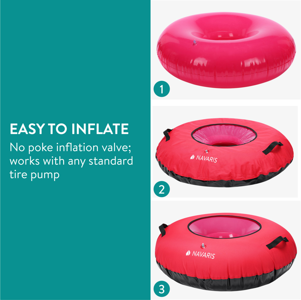Sanie gonflabila Navaris, diametru 100 cm, cu manere robuste, umflare rapida, rosu, PVC/poliester