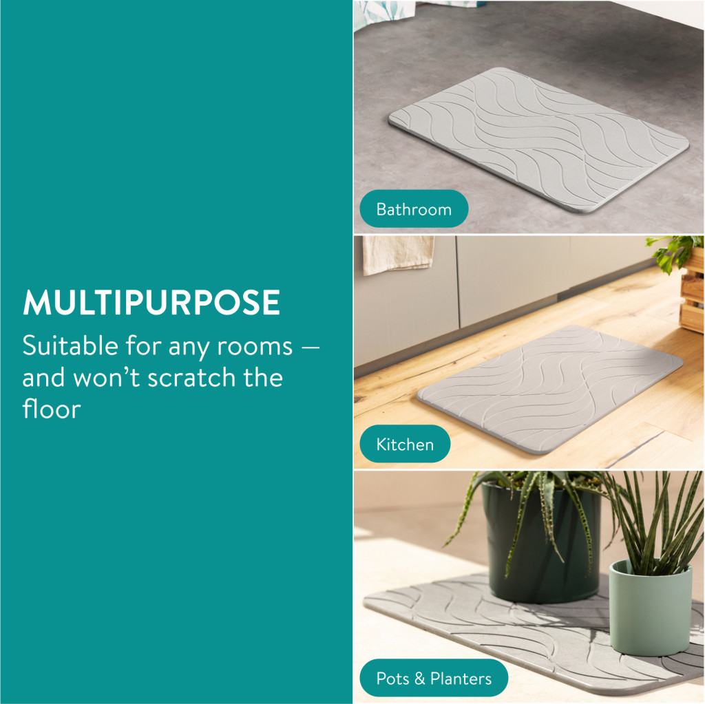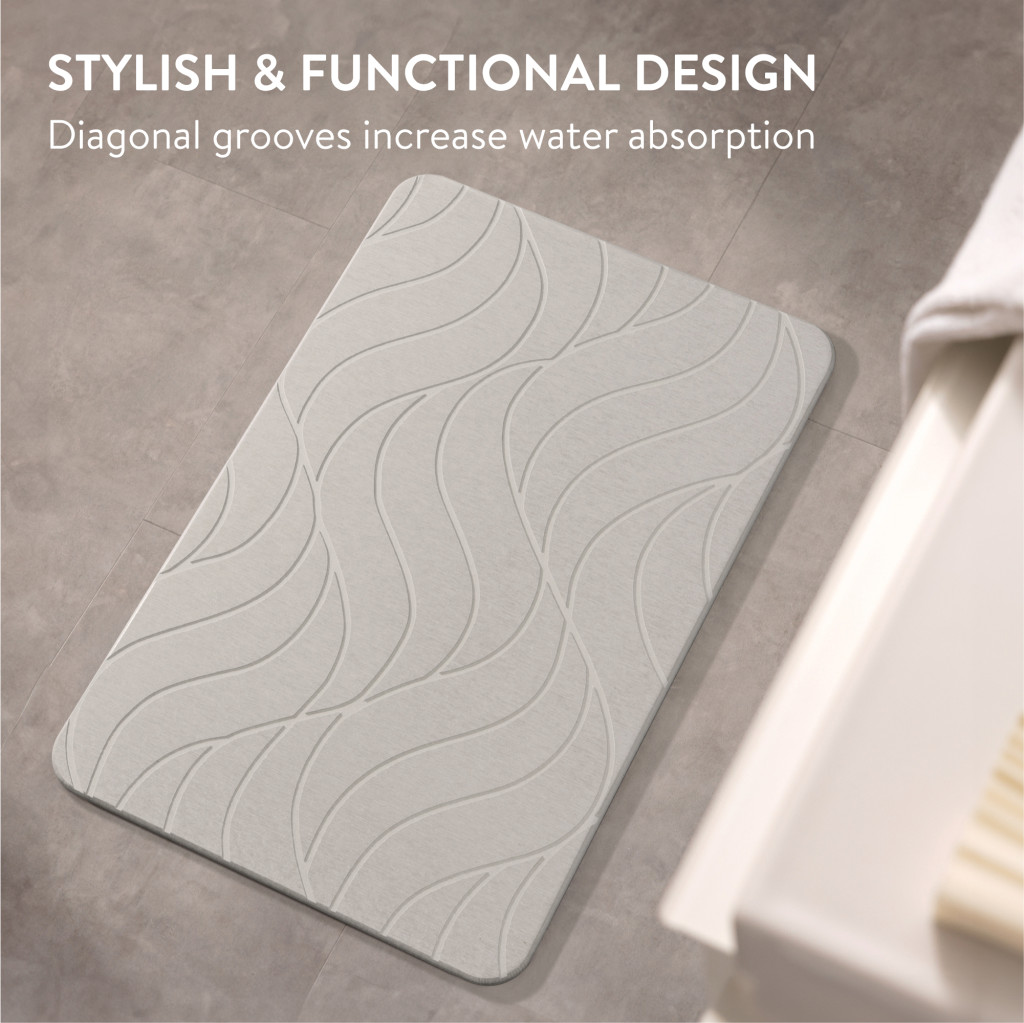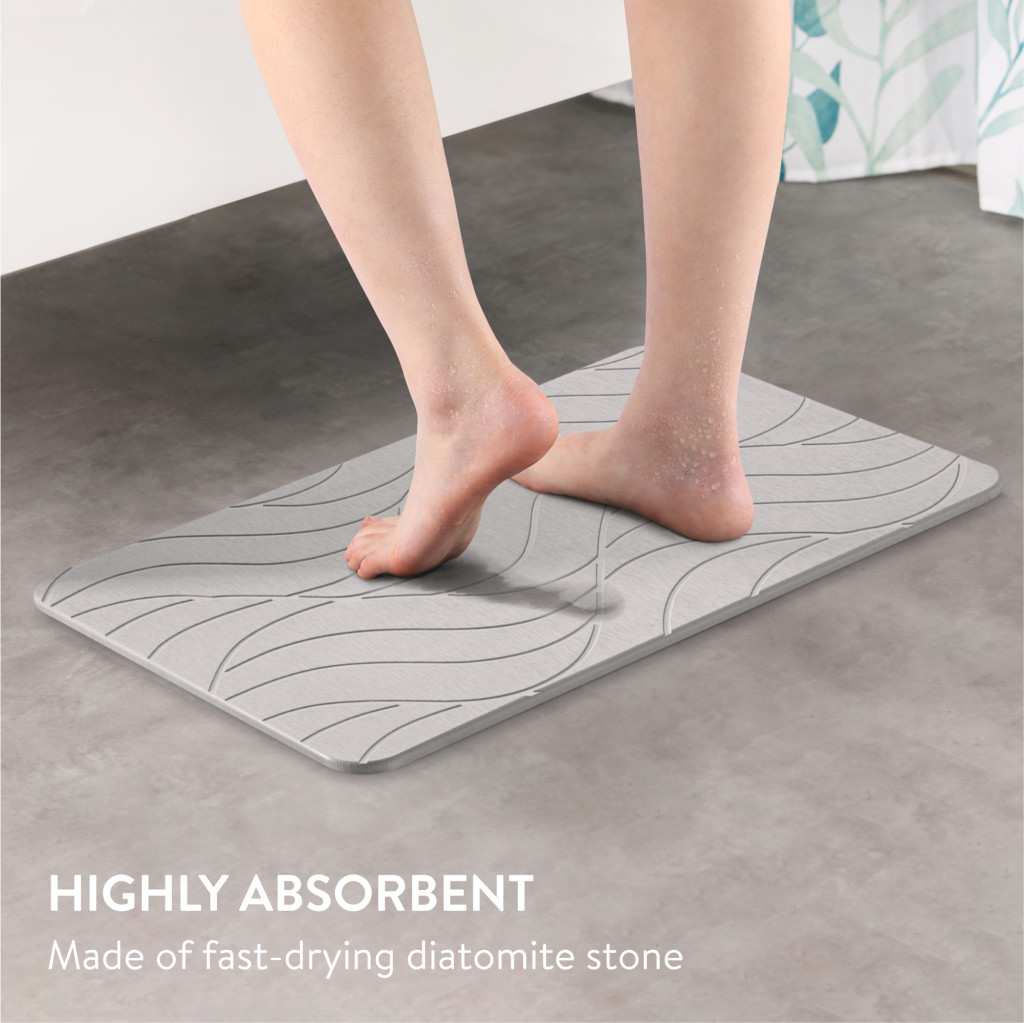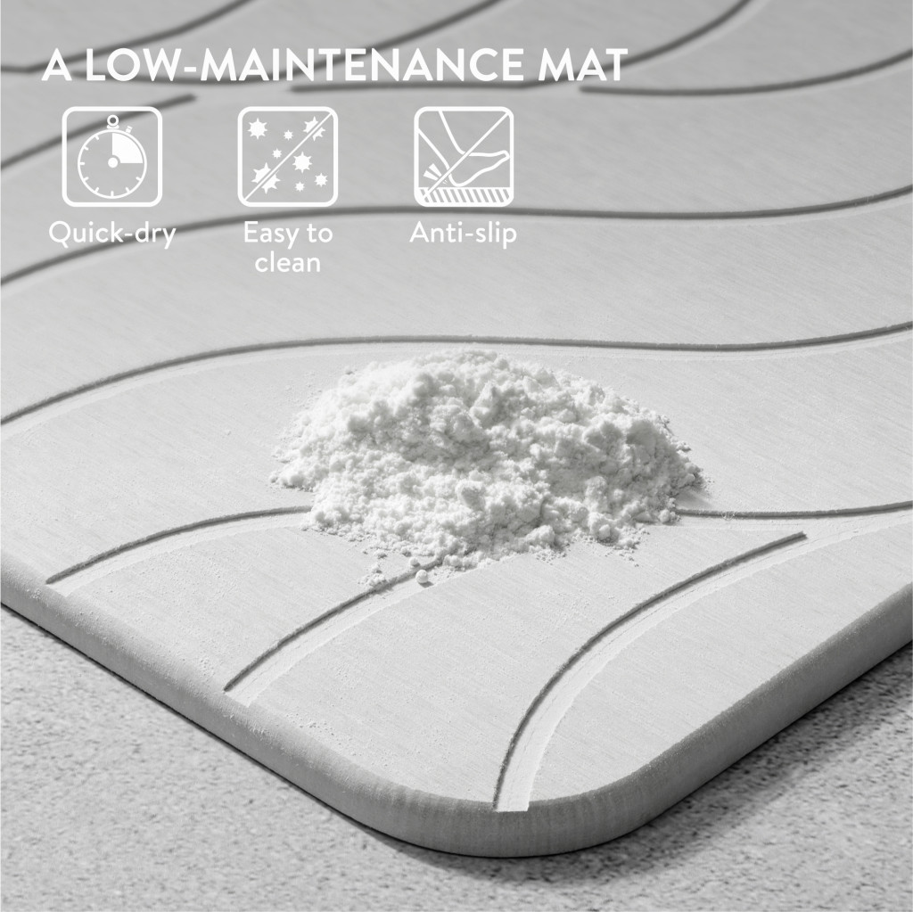 Covoras baie piatra diatomita Navaris, uscare rapida, 60x39 cm, antiderapant, ivoriu, negru, piatra