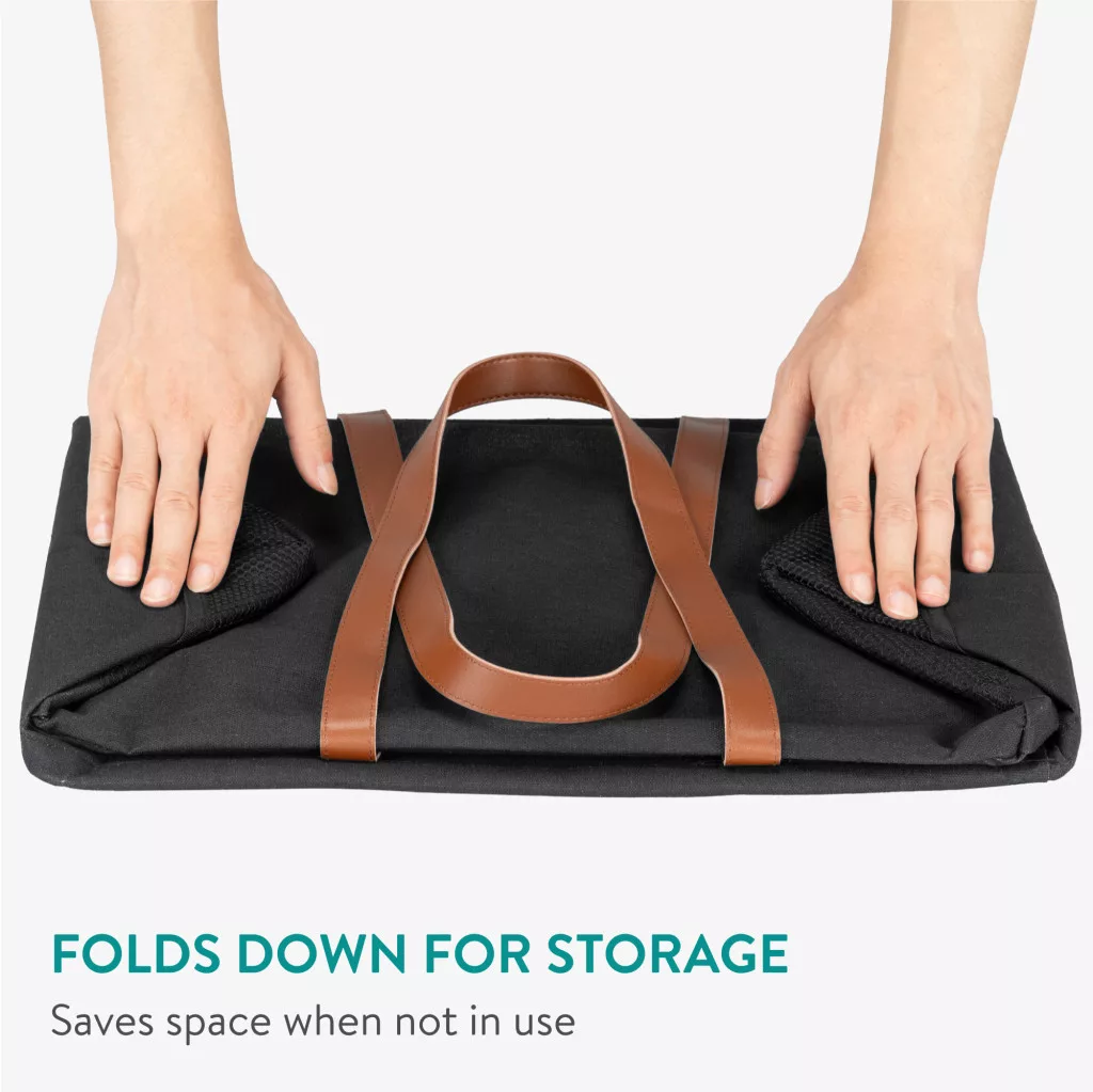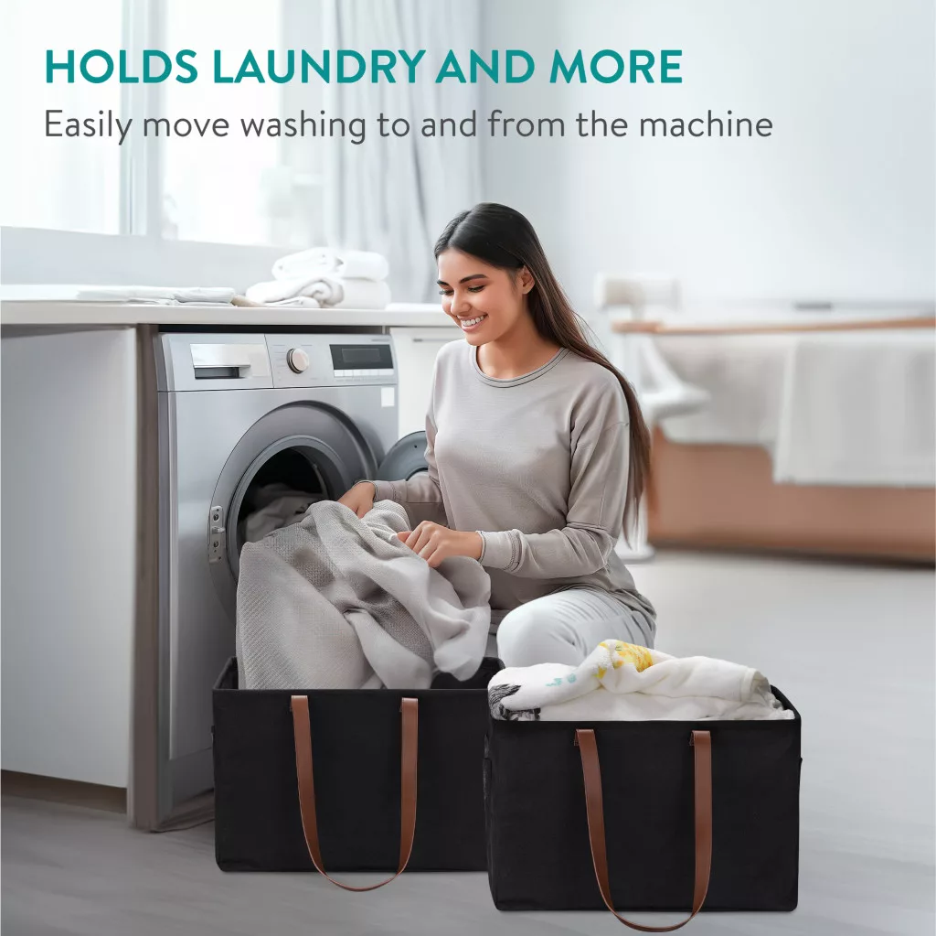 Set 2 cosuri rufe pliabile Navaris, 37 L, manere laterale si snur, 43x31x28 cm, negru, textil