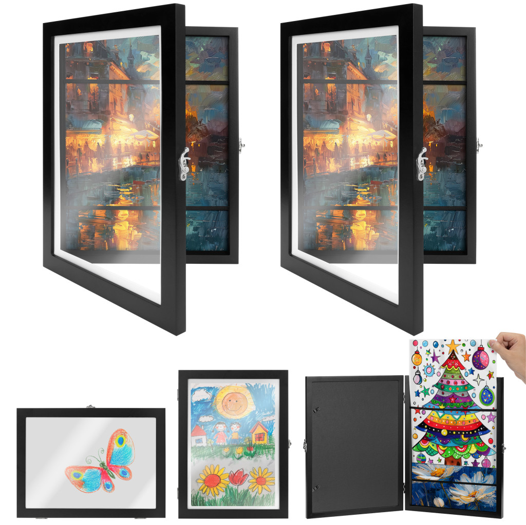 Set 2 rame foto Navaris, deschidere frontala, format A4, schimbare rapida, negru, plastic