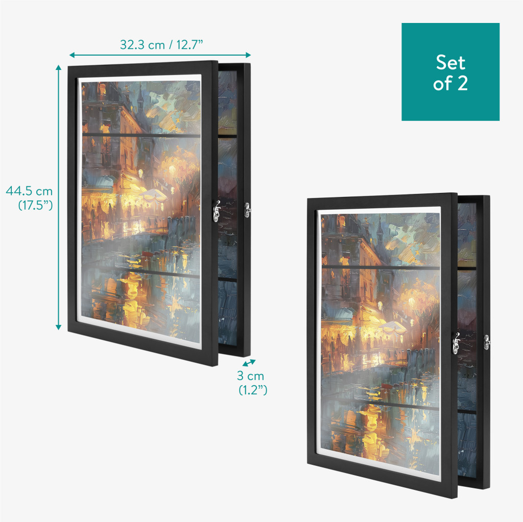 Set 2 rame foto Navaris, deschidere frontala, format A3, schimbare rapida, negru, plastic