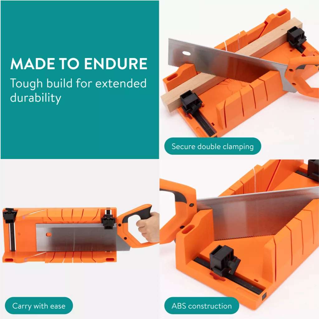 Set cutie de unghi Navaris si ferastrau de mana, 43 cm, taiere unghiuri 90/45/22, 5, negru, plastic