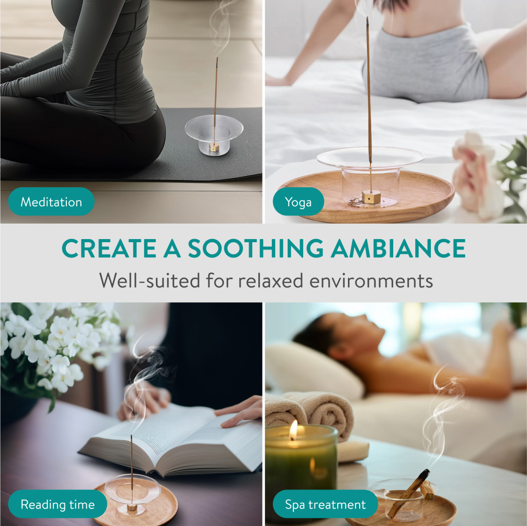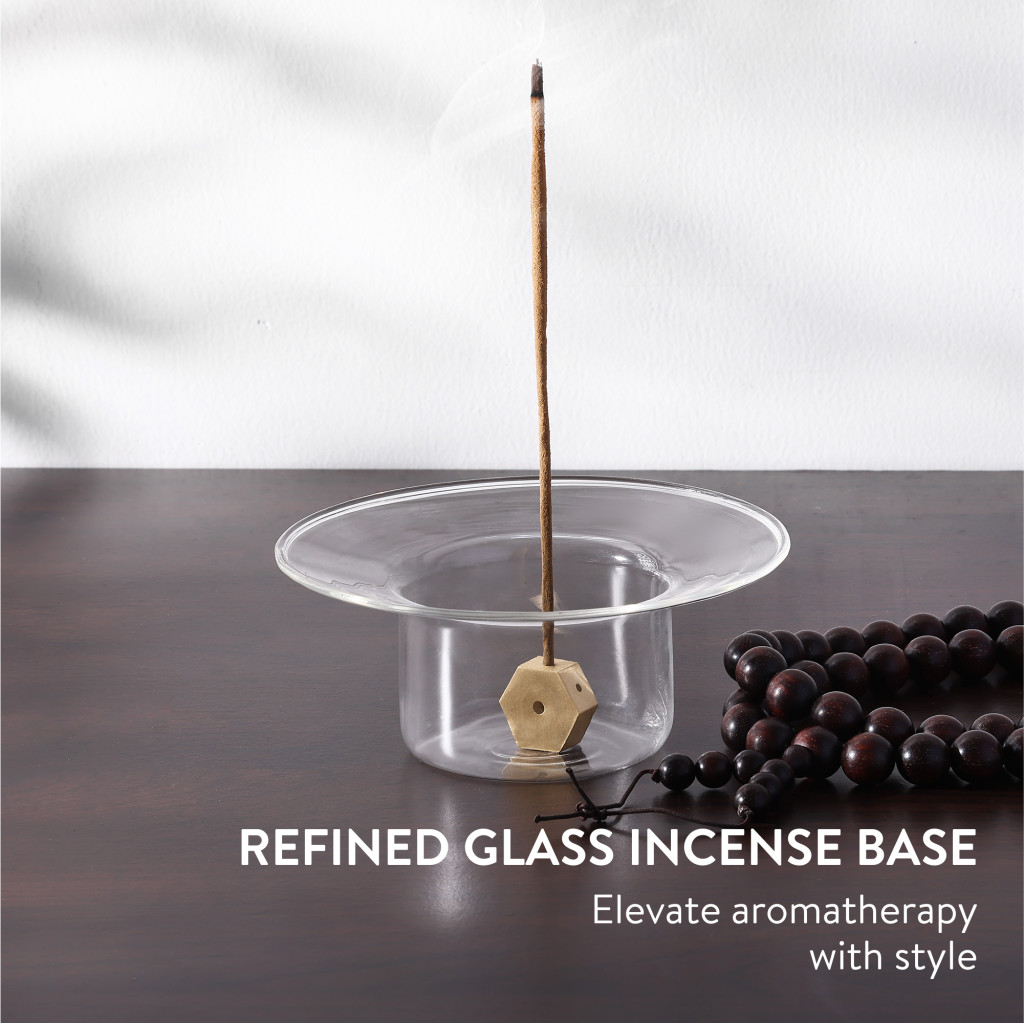 Suport betisoare parfumate Navaris din sticla borosilicata, bol 11.3x5.5 cm, transparent, sticla/metal