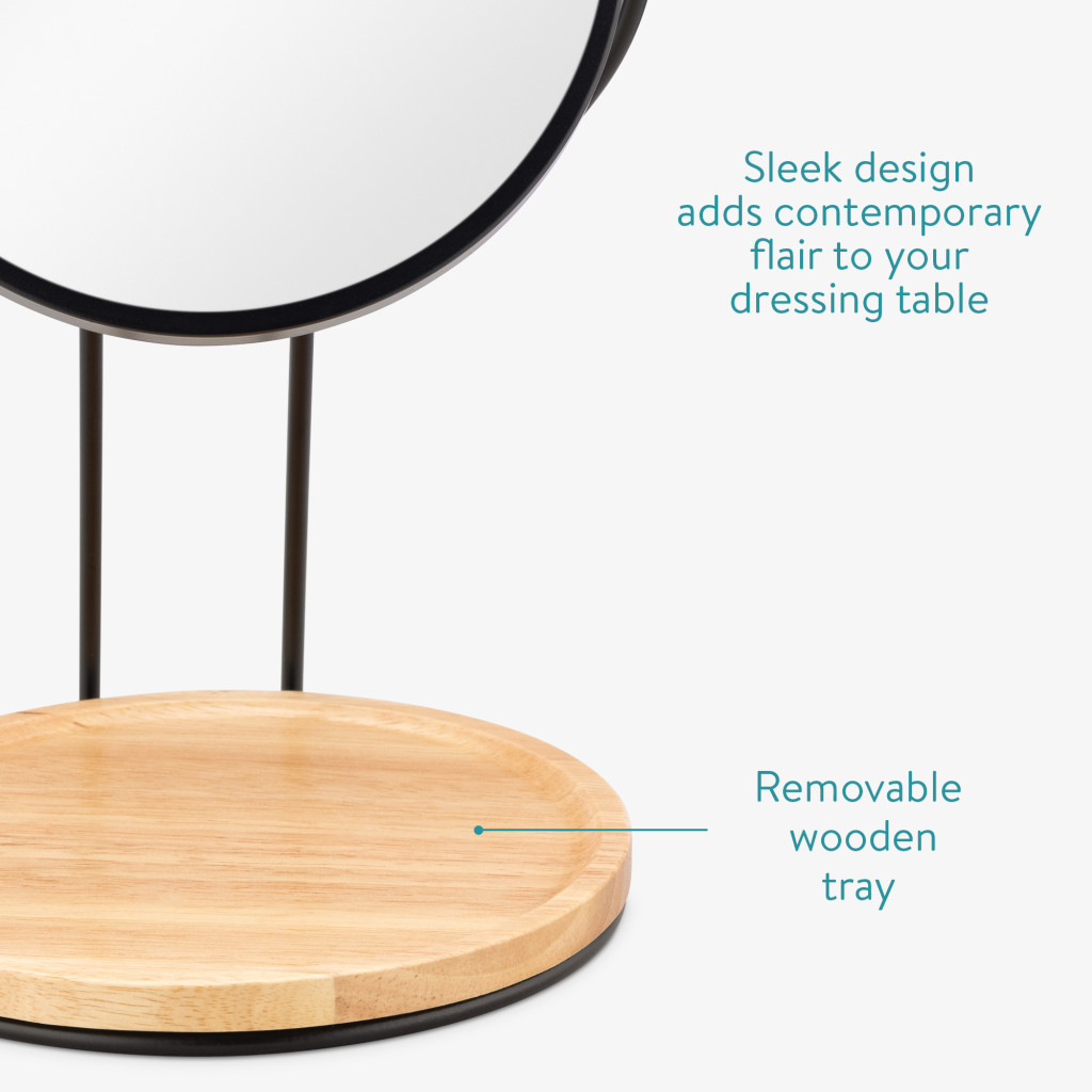 Oglinda cosmetica Navaris cu tava bijuterii, 2x marire, 29x17 cm, masa machiaj, negru, sticla/metal