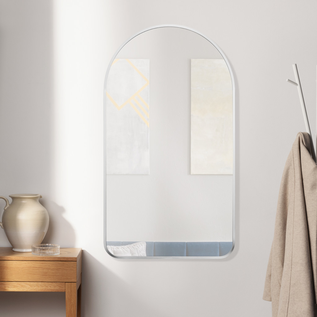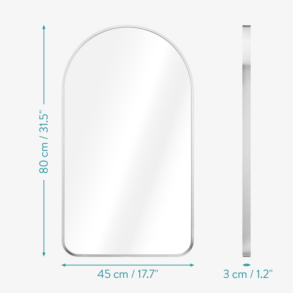 Oglinda de perete Navaris, arcuita, 45x80 cm, montaj usor, argintiu, aluminiu/sticla
