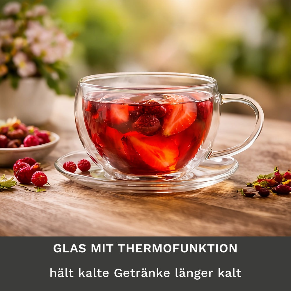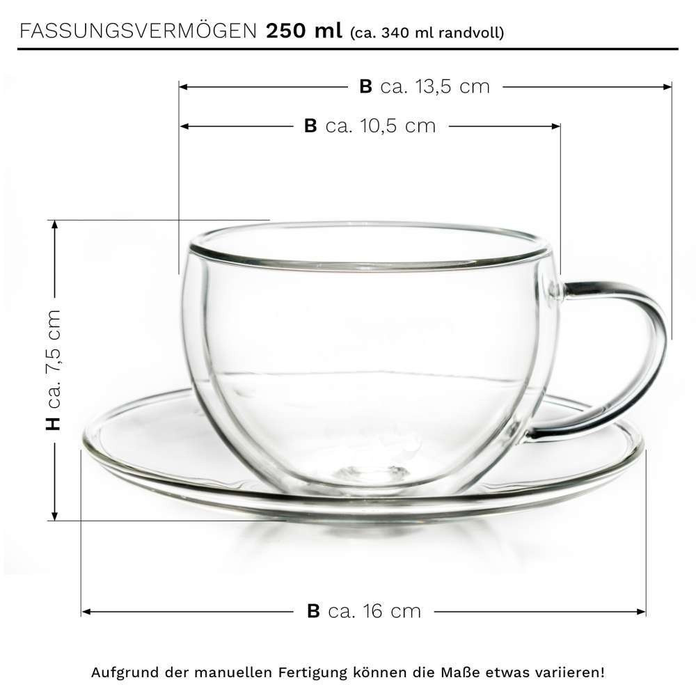 Cana termica Creano, 250 ml, sticla borosilicata, perete dublu, cu farfurioara