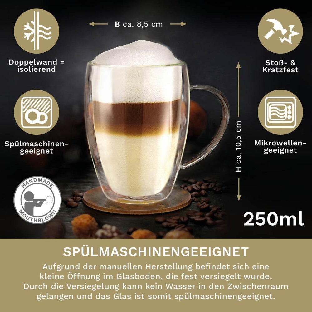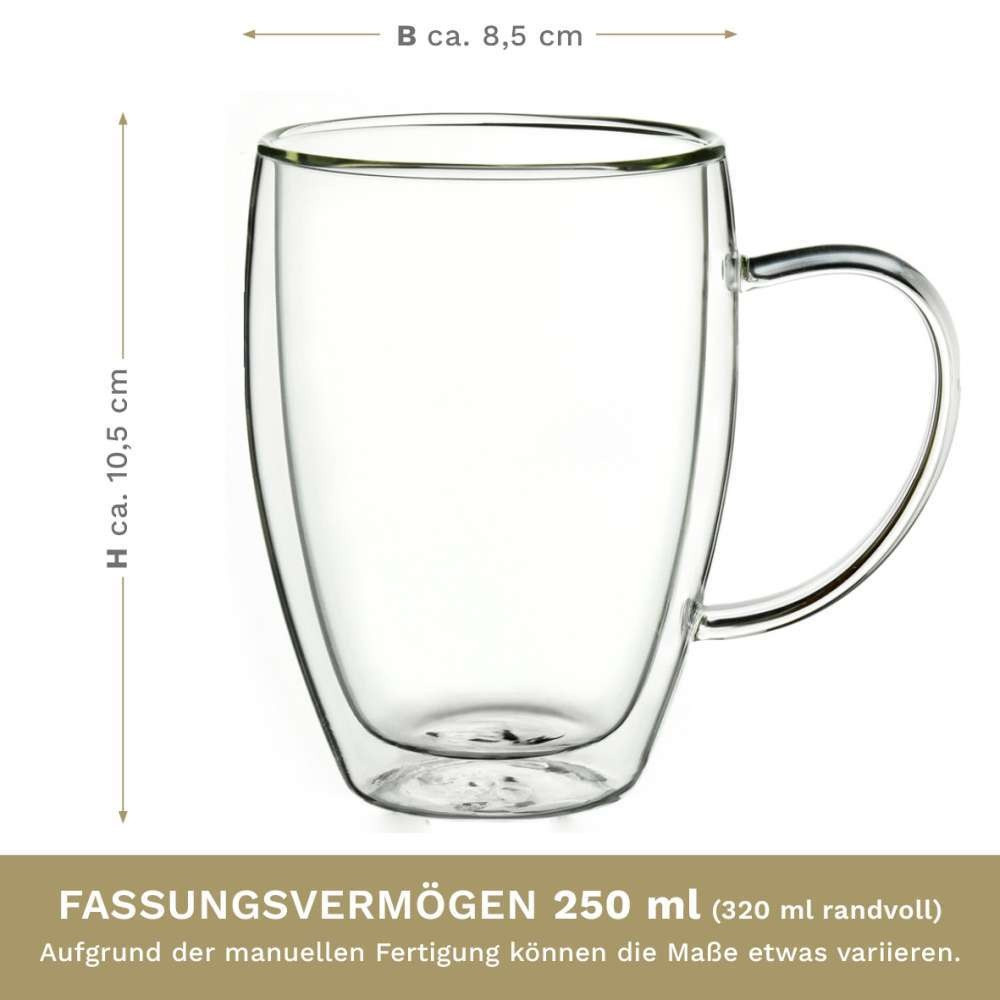 Set 6 cani termice Creano cu maner, 250 ml, sticla borosilicata, perete dublu