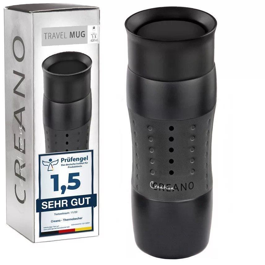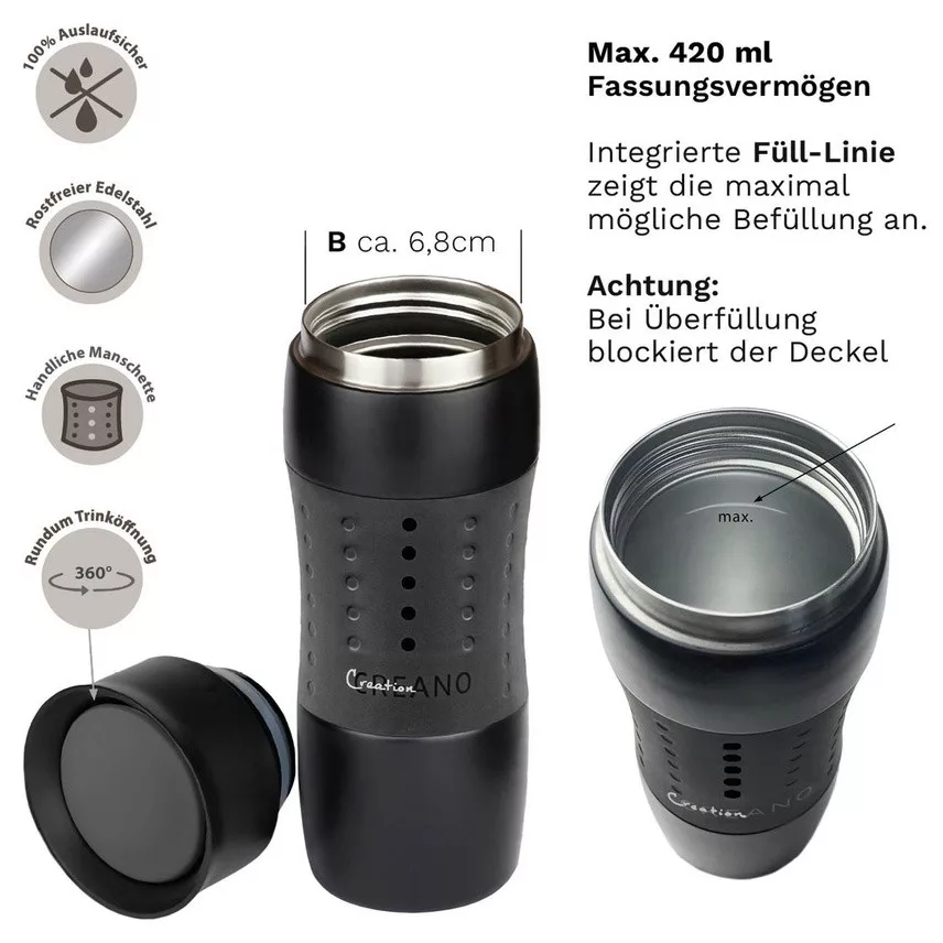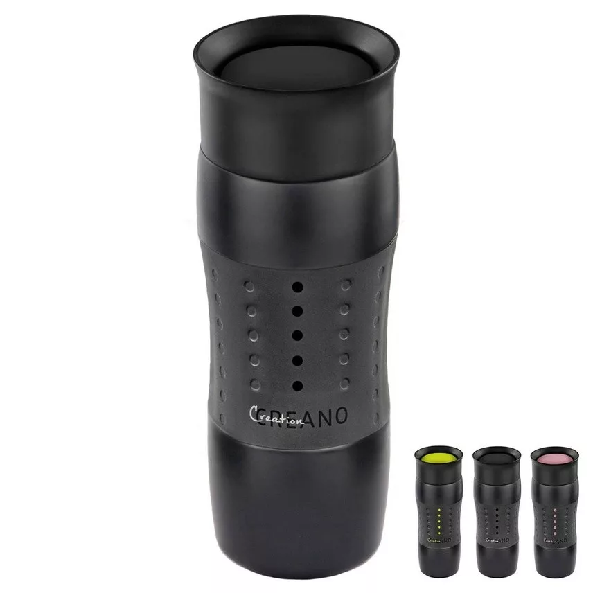 Cana termos Creano Design Travel Mug, 420 ml, inox, etansa, deschidere 360, negru