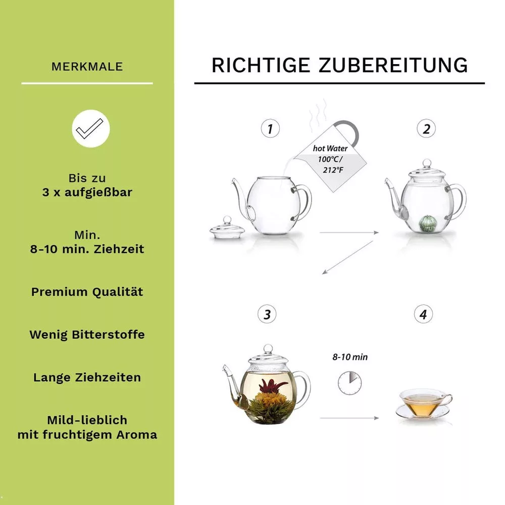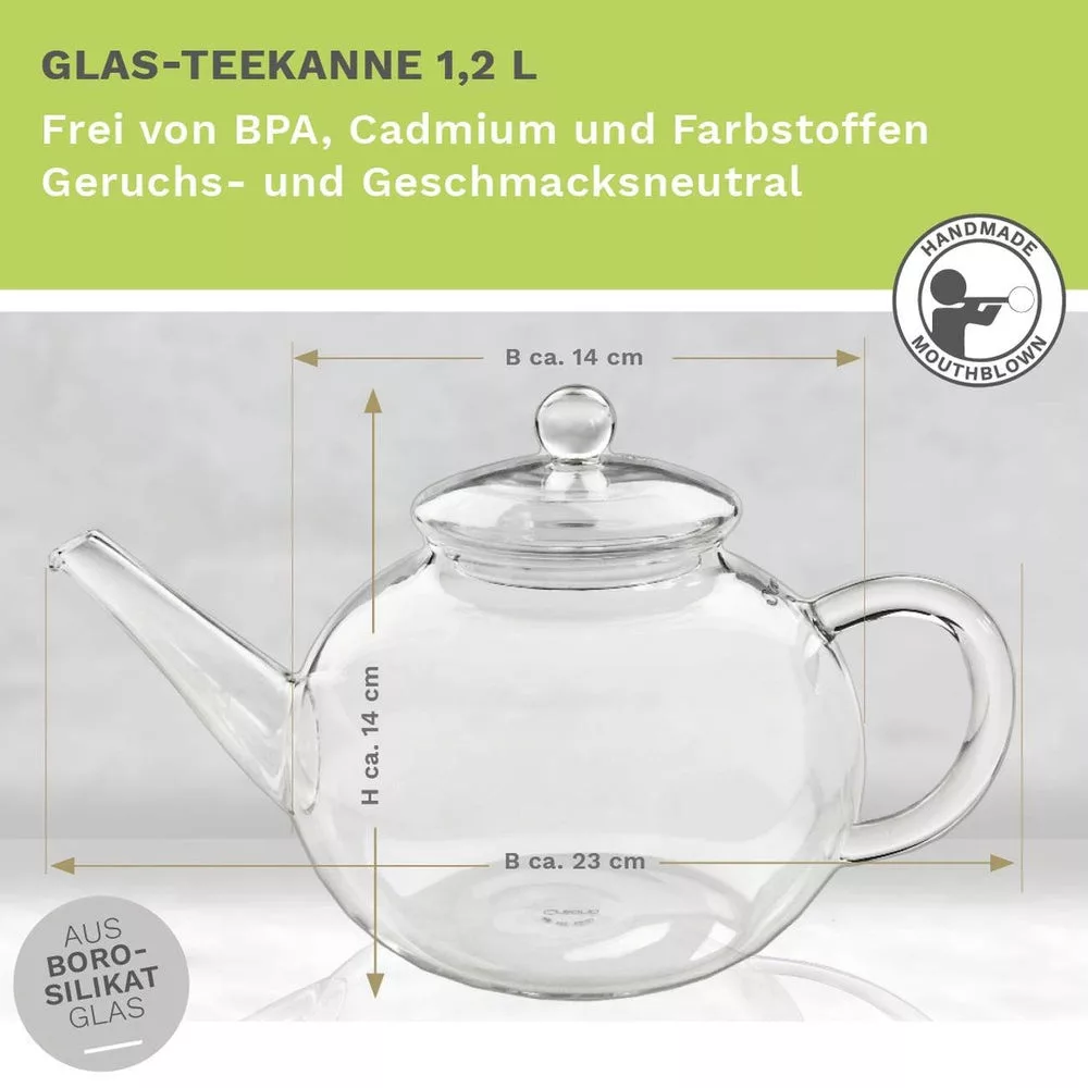 Ceainic din sticla Creano, 1,2 L, cu infuzor din inox, capac si 2 flori de ceai