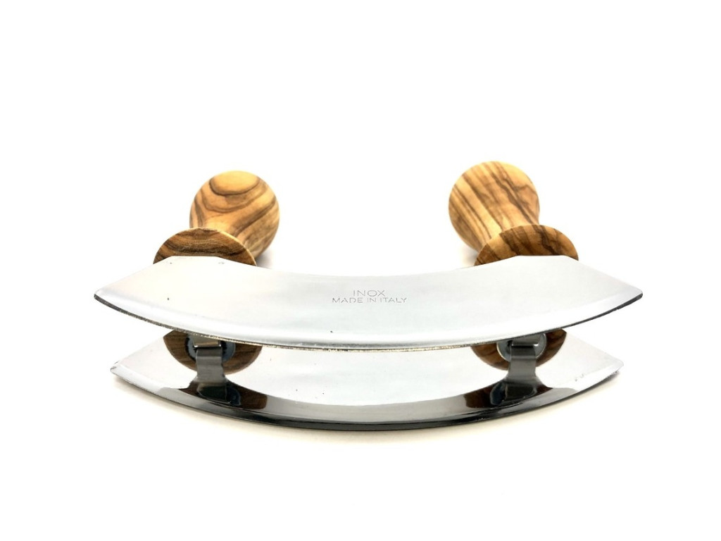 Az olívafa nyelű mezzaluna aprítókés ideális a gyors, kontrollált aprításhoz, amikor finom, egyenletes darabokra van szükséged. A dupla rozsdamentes acél penge hatékonyan vág, a hajlított forma pedig ringató mozdulatokkal segíti a munkát, különösebb erőfeszítés nélkül.